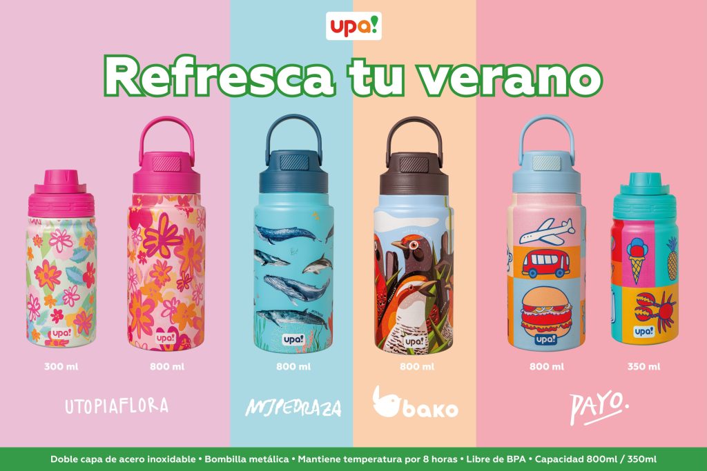 La temporada estival llega con una propuesta que mezcla funcionalidad, diseño y cultura local. upa! presentó su nueva colección de botellas térmicas de verano, una edición limitada que incorpora ilustraciones originales creadas por cuatro destacados artistas chilenos contemporáneos.